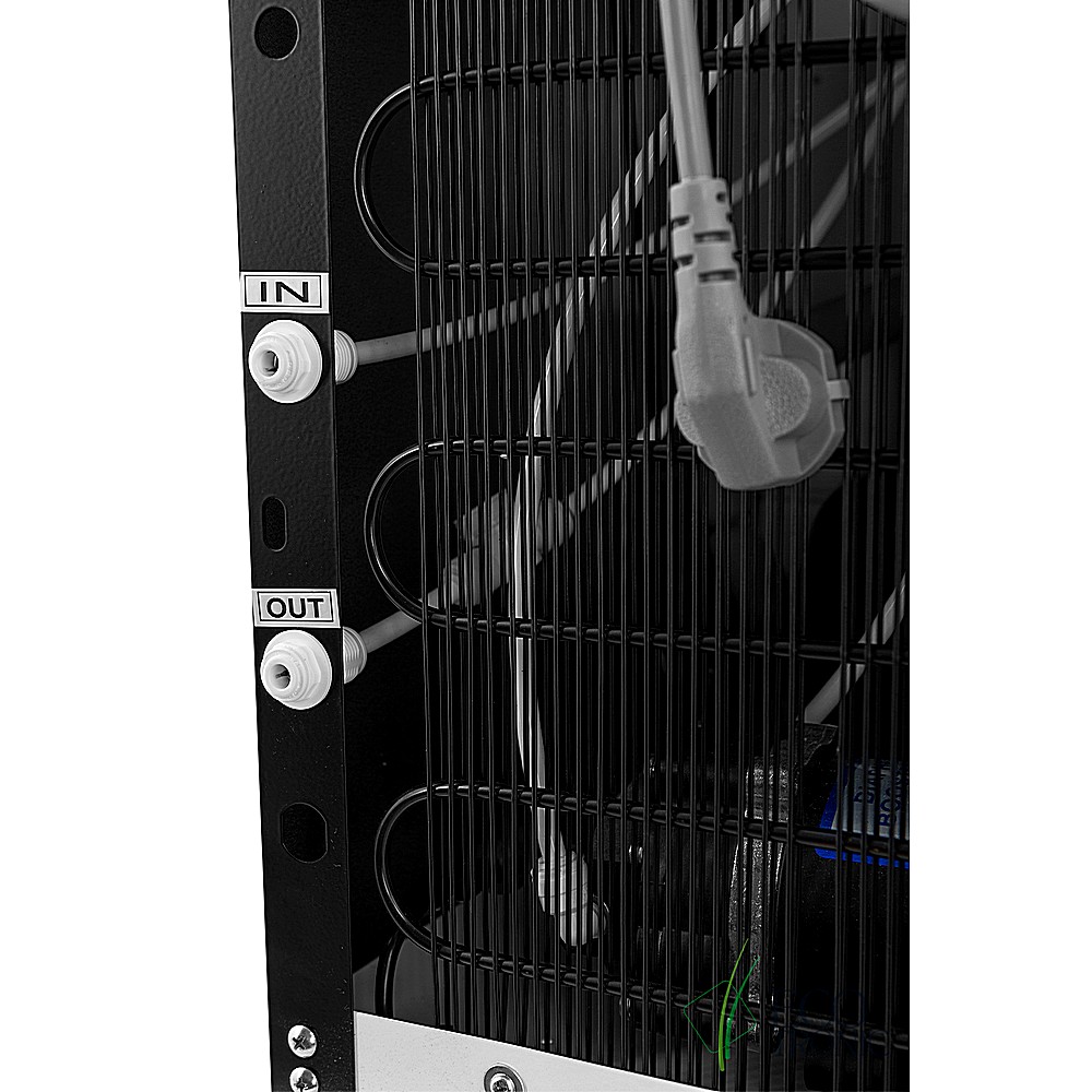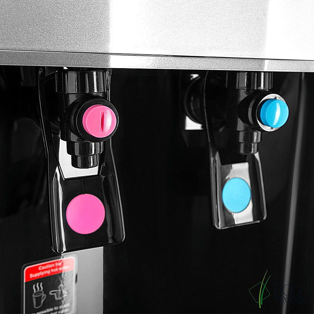 Цвет оргтехники или черный с серебристой передней вставкой, увеличенные баки воды; горячей воды 5л, холодной воды 5л. Накопительный бак из нержавеющей стали 12л., имеет повышенную устойчивость к образованию бактериального налета и позволяет использовать лампу UV для постоянной дезинфекции фильтрованной воды.